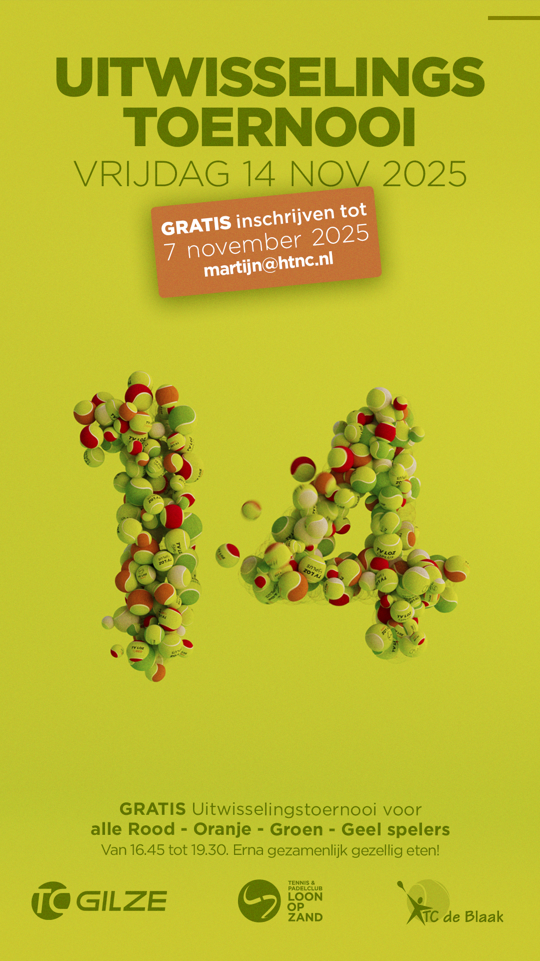 Noteer het in je agenda: op vrijdag 14 november 2025 gaan we met z'n allen naar De Blaak voor het jaarlijkse uitwisselingstoernooi!