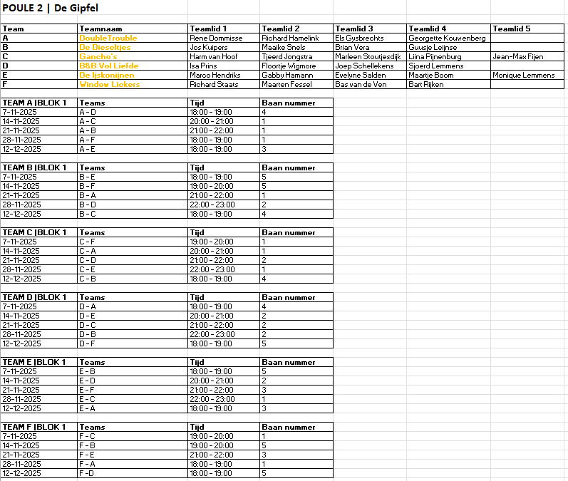 - De organisatie deelt de teams in poules in, op basis van speelsterkte. Zo speel je altijd tegen gelijkwaardige teams.