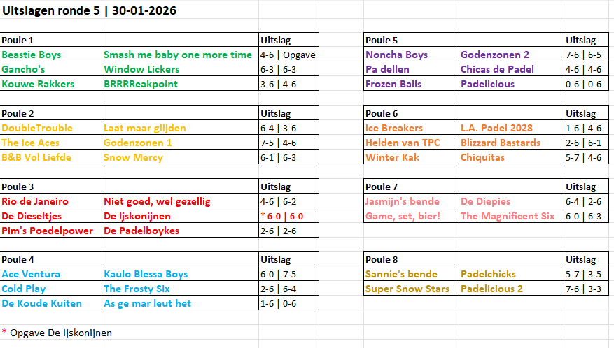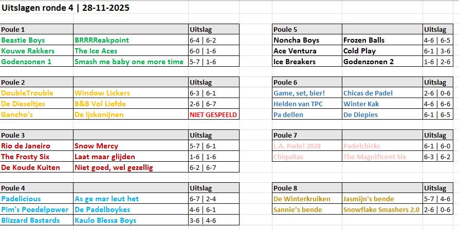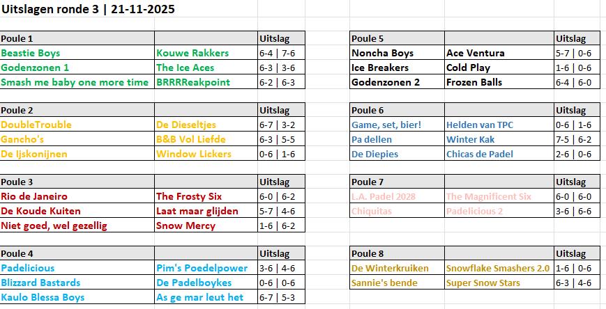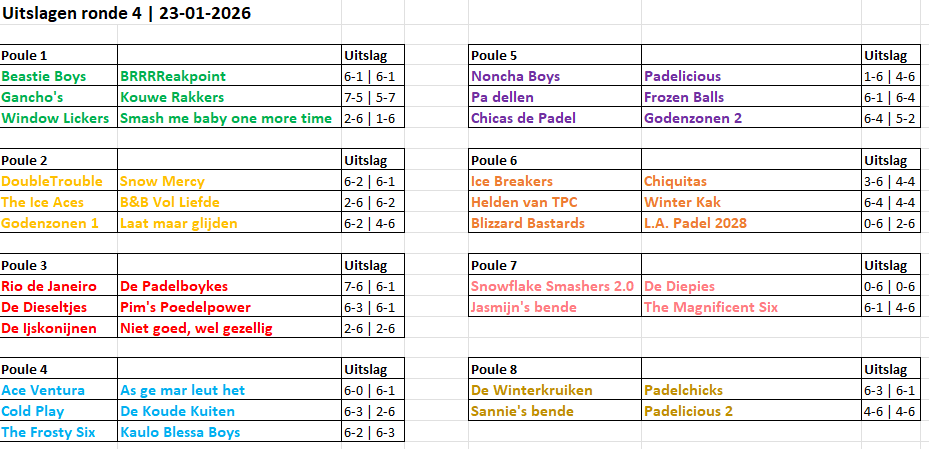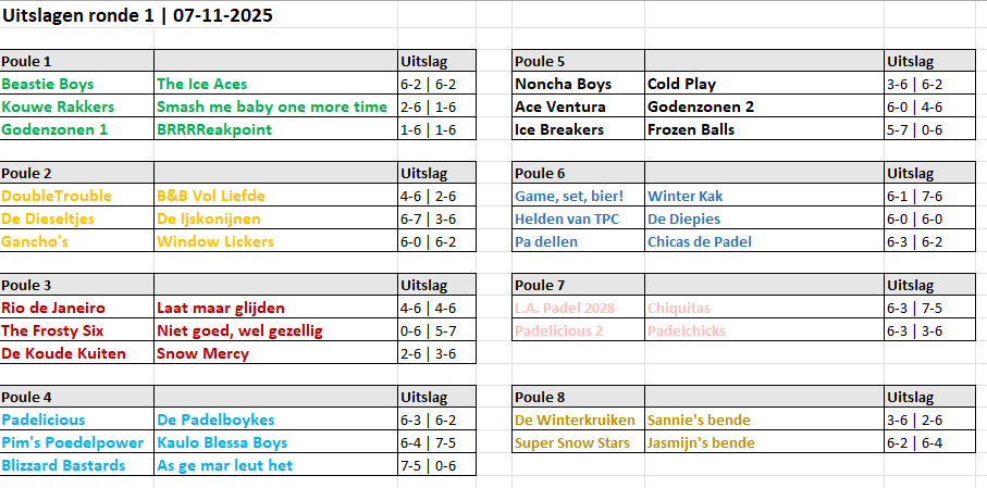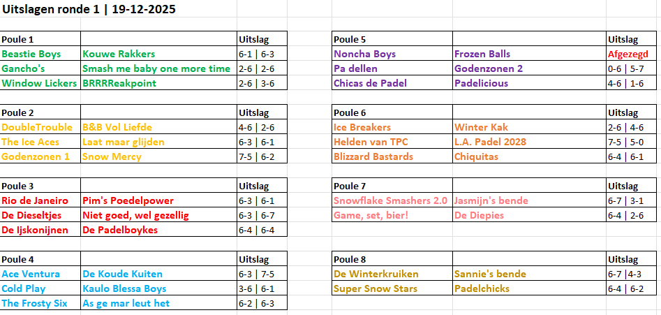 Pouleverdeling en uitslagen